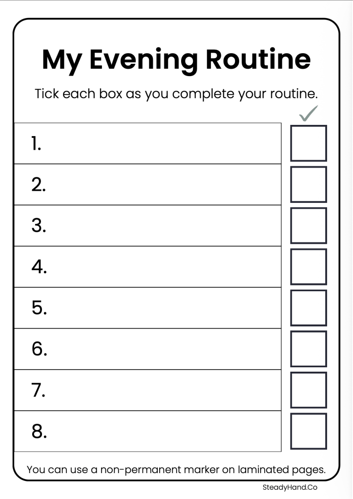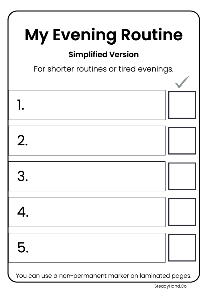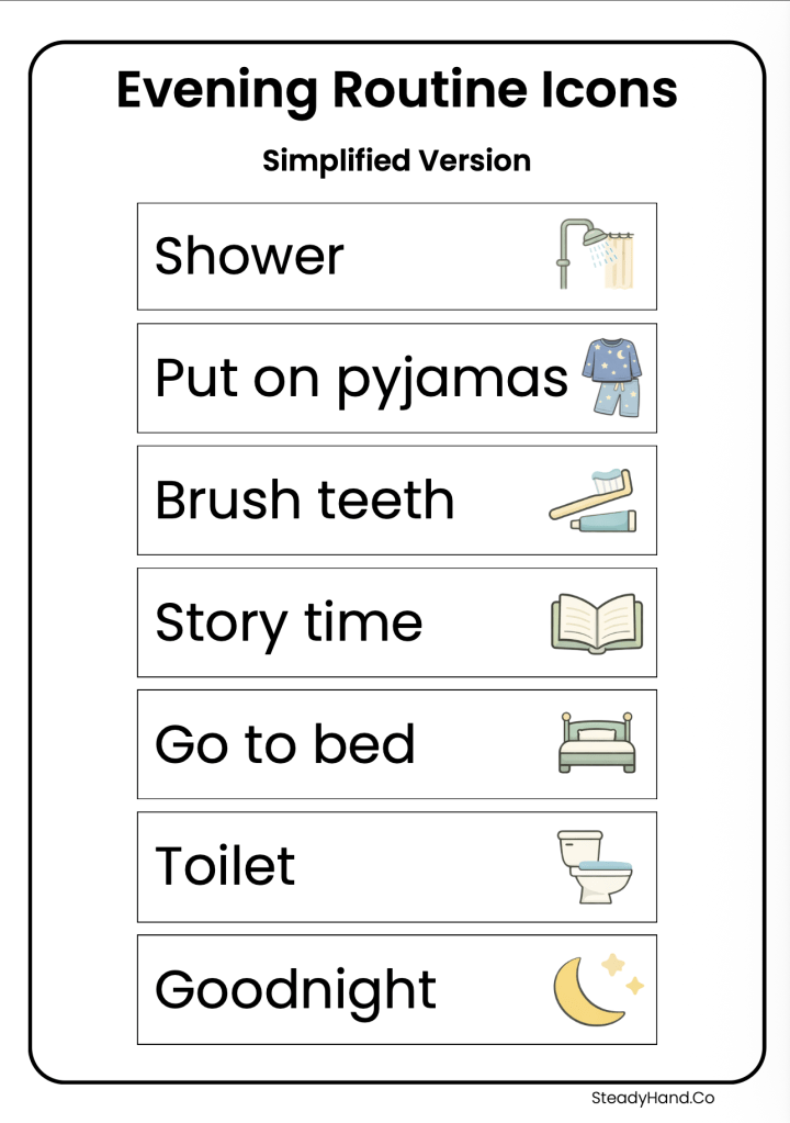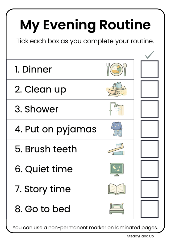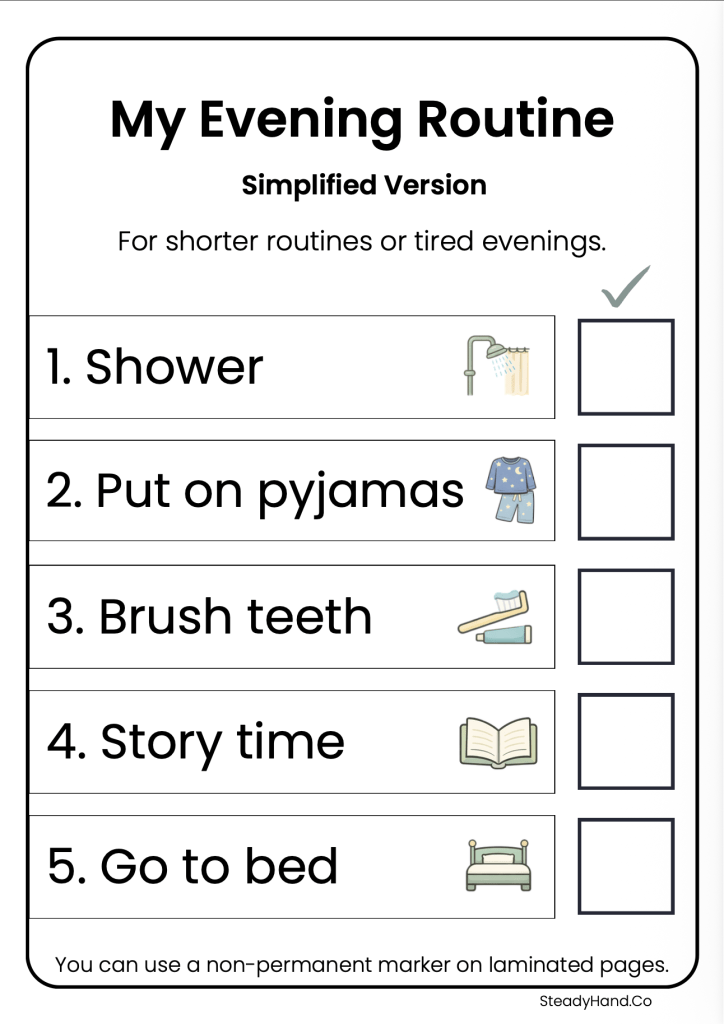 The goal is not to make evenings rigid. The goal is to make the routine feel calmer, clearer, and more manageable.